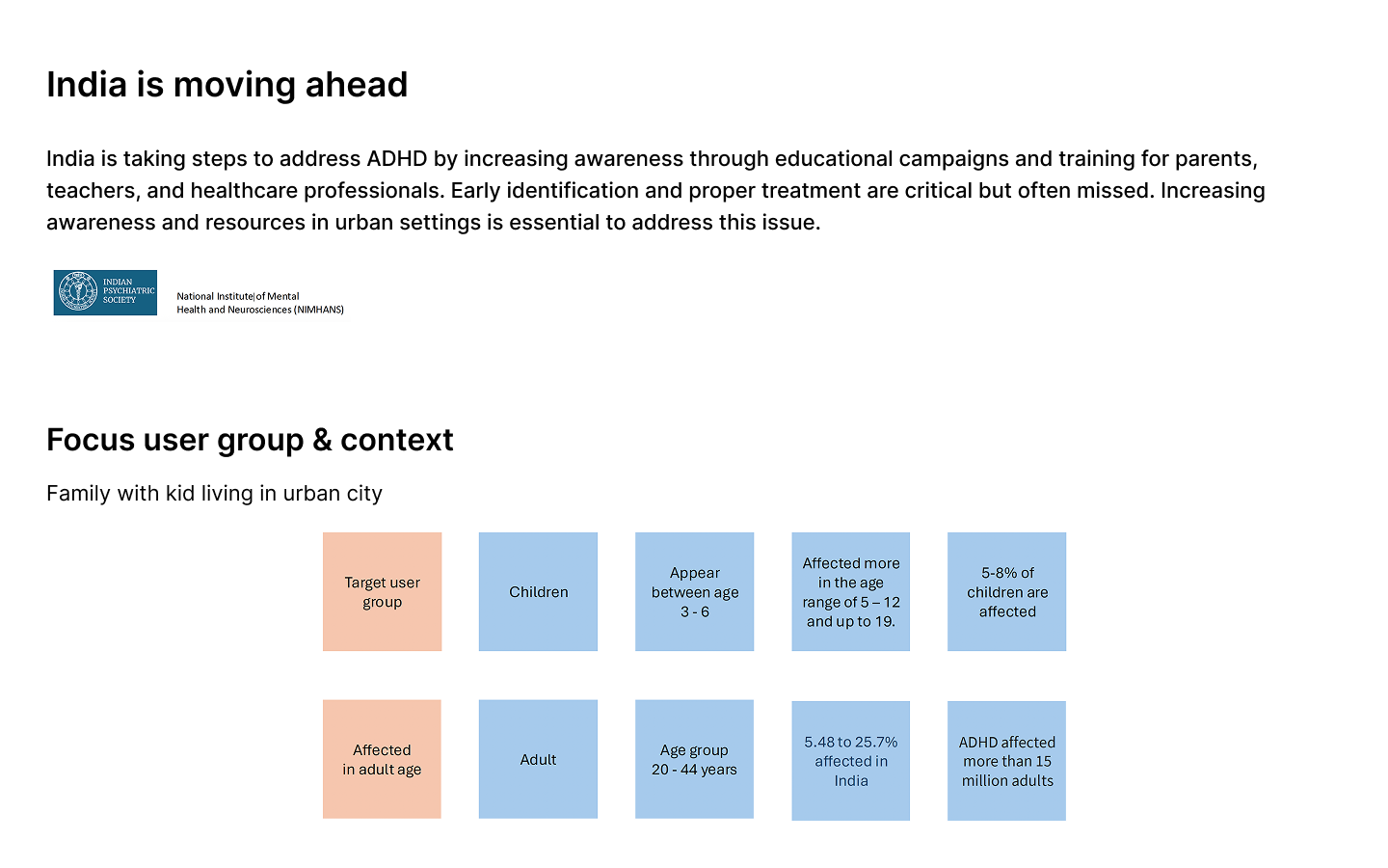 ADHD remains under-addressed in India due to low awareness and frequent misinterpretation of symptoms as misbehavior. Diagnosis is often delayed, especially in rural areas with limited access to mental health care. Children are unfairly labeled, impacting their self-esteem, and girls are frequently overlooked due to subtler symptoms. Rigid school systems and a lack of inclusive strategies hinder academic progress. With limited behavioral support, untreated ADHD increases the risk of anxiety, depression, and social withdrawal.